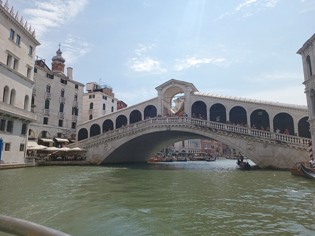 If you step into a vaporetto (water bus) No 1, it will take you slowly along Venice’s Grand Canal aka “the most beautiful street in the world”. The pace will be leisurely, and it will enable you to take in sights unhurriedly and take photographs. The length of the canal is nearly four kilometres, and Venice’s most beautiful palaces can be found along it. Taking this vaporetto was definitely one of my trip’s highlights, and I appreciated all the Byzantine, Gothic, Renaissance and Baroque architectural splendours. The Rialto Bridge, the oldest of the four bridges crossing the canalis also be best viewed from a vaporetto.