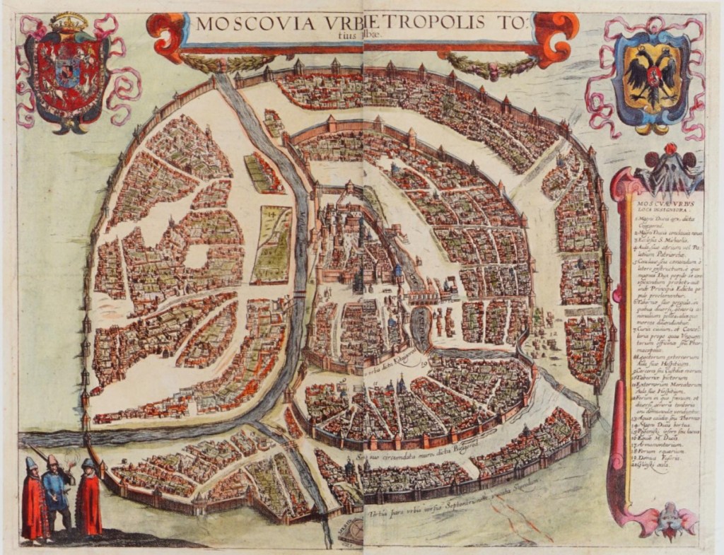 The map of Moscow and the provided sixteenth-century text are equally illuminating. First of all, the sixteenth century authors refer to Moscow (Moskva) as the capital of the whole of White Russia. This is indeed where Moscow was believed to reside in the sixteenth century – in White Russia, as Alexnder Guagnini’s sixteenth century book also states that Rus’ was divided into three parts: White Russia governed by the Muscovite Grand Duke – with Moscow in its centre, Black Russia, being under the Polish rule, and Red Ruthenia, referring to the country’s south-western principalities. The Kremlin, the Red Square and even the Saint Basil’s Cathedral (completed in 1561) are all can be discerned on the map provided. The main river of Moscow is Moskva (Moscow-River), but our sixteenth century guides tell us that another openly flowing river is just as important – river Neglina, that cuts across the very centre of the capital. In fact, when the very first fortifications for the Kremlin were built way before 1156, it was river Neglina that acted as a moat. In our twenty-first century, Neglina, Neglinna or Neglinnaya is now an underground river of Moscow, having been completely “rebuilt” or redirected in 1792. A comparison here can be made with many now subterranean rivers of London, that were once very much overground and flowing openly, such as river Fleet, which gave its name to Fleet Street. It was once a major river, especially in Roman times and medieval Britain, but had gradually turned into a sewer.